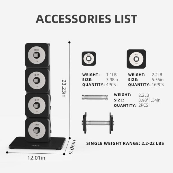 دمبل قابلة للتعديل من DHT، طقم دمبل مع حامل، طقم دمبل للأوزان الحرة، متعدد الاستخدامات للياقة البدنية، مانعة للتدحرج، طقم... Read more